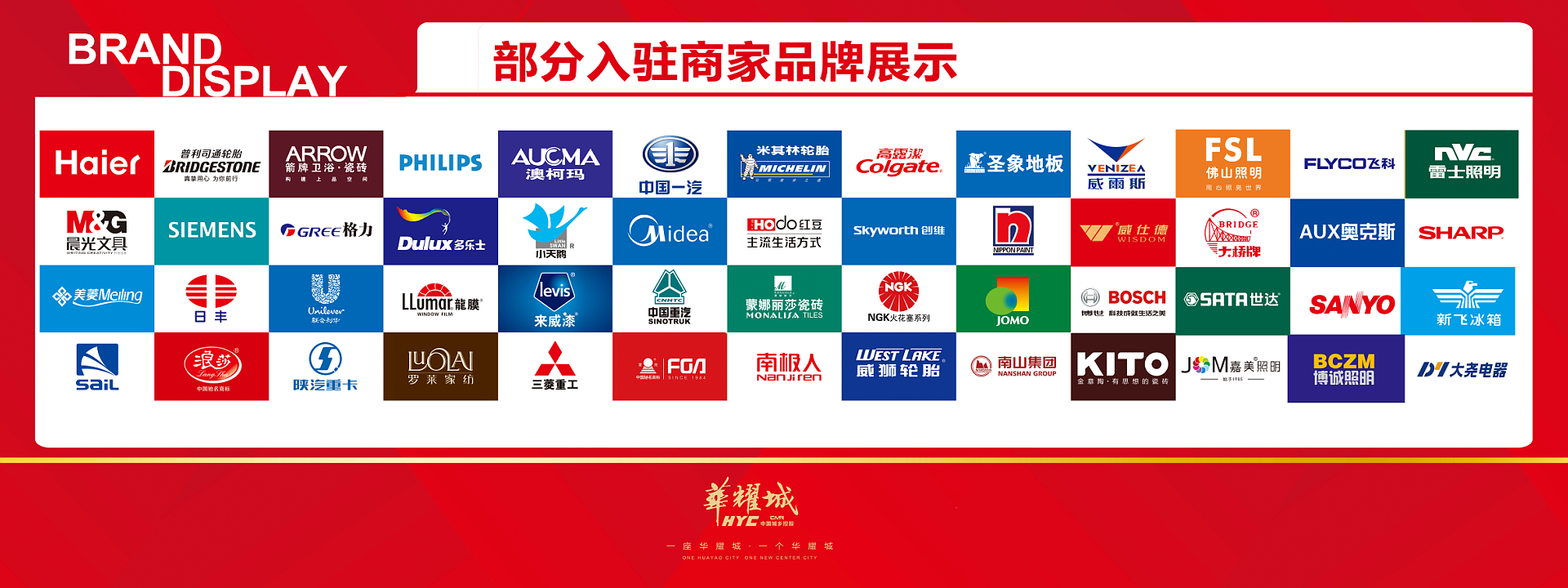 截止到目前邯鄲華耀城已招商完成38185平米,涵蓋了輕紡百貨、汽摩配、五金建材及教育、酒店、美容等多種業(yè)態(tài)。大堯電器、南山集團等邯鄲多家知名企業(yè)已經(jīng)入駐邯鄲華耀城,邯鄲市五金電器營銷行業(yè)協(xié)會、邯鄲市建材聯(lián)盟、邯鄲市家電商戶聯(lián)盟相繼與邯鄲華耀城確定整體入駐合作,迄今為止已有海爾、惠普、康佳、朗孚照明、創(chuàng)維、大自然木門、德力西電氣、多樂士漆、飛利浦、ROBAM、公牛插座、日豐管、施耐德電氣、史丹利工具、熊貓線纜、正泰電器、箭牌瓷磚.衛(wèi)浴、3M凈水、蒙娜麗莎瓷磚、偉星管業(yè)、南極人、紅豆、他她愛等數(shù)百品牌商家紛紛強勢入駐邯鄲華耀城!